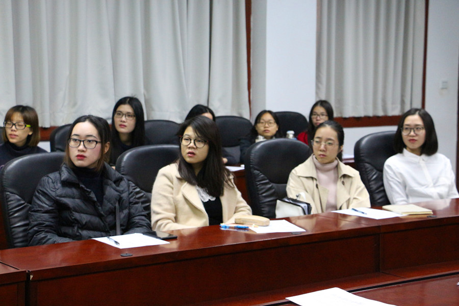 徐超首先对蓝天教育一行人的到来表示热烈欢迎,同时也希望参加招聘的毕业班同学能认真答题和说课,展现外语学子的良好风采。随后蓝天教育英语学科招聘主任陈智贤从教育行业的选择与发展前景、蓝天教育的教学模式、招聘岗位与个人晋升三大方面进行了介绍:他指出教育行业作为朝阳产业具有良好的发展前景,建议同学依据个人意愿、距离家庭远近、工作环境进行选择岗位;蓝天教育采用分层教学课程体系开展精细化英语教育,做到寓教于乐,从而保障了教学的质量。接下来,与会的同学还进行了英语教师的招考笔试环节,下午则安排了英语试讲的部分,毕业班同学认真准备,争取获得心仪的岗位。