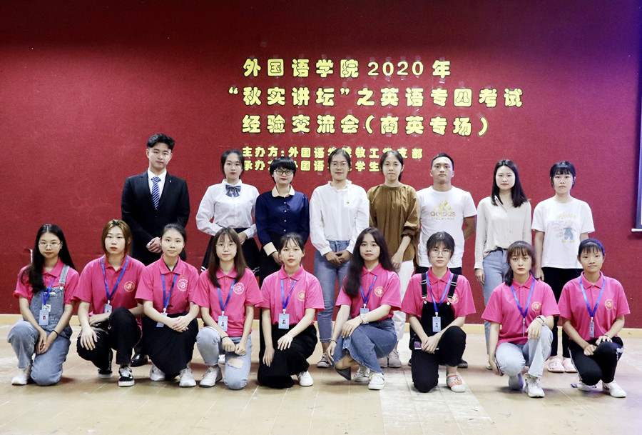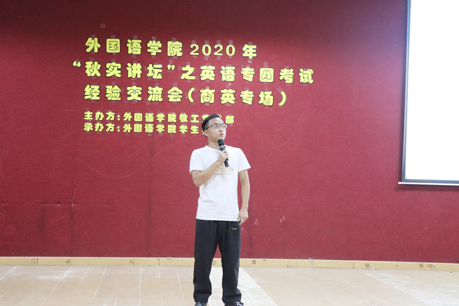 为进一步发挥基层党组织的战斗堡垒作用,发挥师生党员的先锋模范作用,帮助学生更好地备考英语专业四级考试, 2020年11月20日下午4点20分,KY官网教工第一党支部联合KY官网学生会在一教206隆重举办了2020年“秋实讲坛”之英语专业四级经验交流会(商英专场)。KY官网教工第一党支部书记李海燕老师、19级辅导员谢清玲老师、学生嘉宾路晓莉和邱茂山以及各年级同学参加本次交流会。