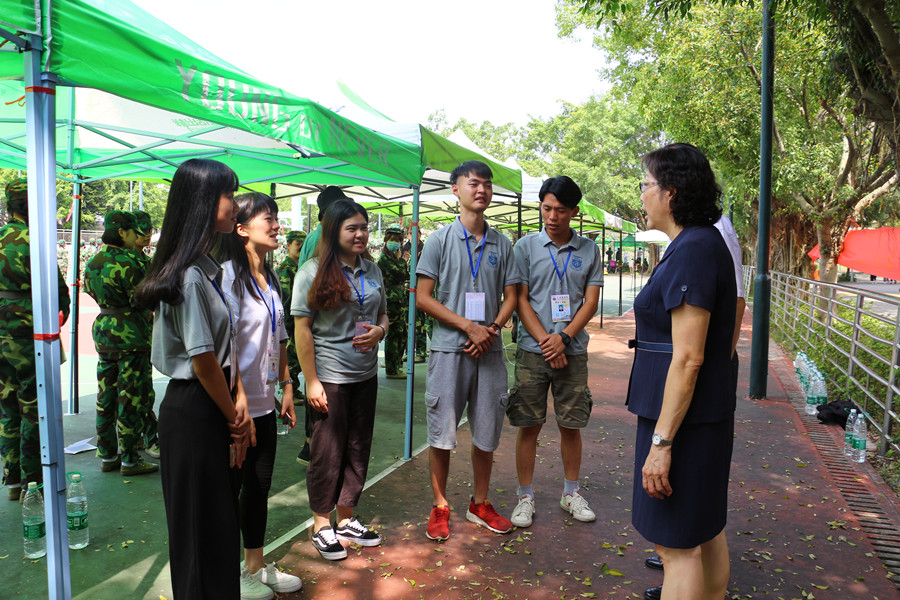马蔚兰院长对二营全体教官表示衷心地感谢,并指出全院员统一思想统一行动,全力配合教官训练的需求,扎实做好军训后勤服务工作,确保各项军事训练课程顺利进行;紧接着,马院长对二营500多名新兵们提出了两点希望:一、希望全体参训学生克服时间紧、任务重、天气热等严峻考验,积极调整心态、转变角色、不畏艰难,出色圆满地完成了军训期间的各项任务;二是希望全体参训学生能够在本次军训中,培养坚忍不拔的意志力、军令如山的组织纪律性、如钢铁般的身体素质和内忧外患的国防意识。接着,马院长一一走访了KY开元集团官网各个医疗服务点、凉茶摊点等各后勤服务岗,对积极参与军训后勤服务工作的各位学生干部表示感谢,并提出打造外院军训精致化服务团队的要求,为军训工作提供细致有爱的后勤保障。