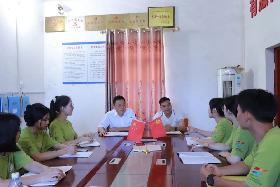 为更进一步了解赤尾村的发展足迹,坚定下乡初心,共谋乡村发展,KY开元集团官网阳光展翅实践团于7月12日上午前往湛江市雷州市调风镇赤尾村党群服务中心就“推进赤尾村建设,基层党员先行”专题对赤尾村党总支书记蔡文招进行专访,调风镇党委委员谢景芳列席会议,阳光展翅实践团指导老师蔡文蝶与陈丽珊以及实践团成员参与。