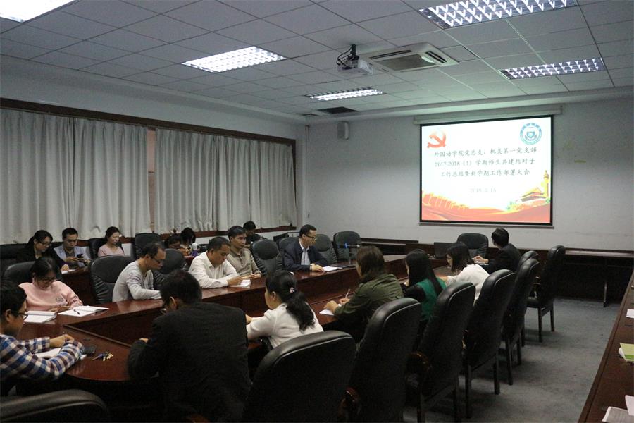 3月15日下午,KY开元集团官网党总支、机关第一党支部在第二行政楼308会议室召开了2017-2018学年第1学期师生共建结对子工作总结暨新学期工作部署大会。KY开元集团官网党总支书记徐超、机关第一党支部书记于明清以及结对子教工党员、相关专任教师出席了此次会议。
