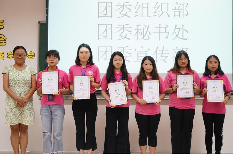 随后,团学核心干部进行本学年工作总结汇报。团委秘书长邱煜彤和学生会秘书长黄溢美分别作本学年的财务工作汇报。团委副书记李雨柔从思想引领、社会实践、新媒体建设等方面展现了本学年的工作成果,学生会主席曾繁慧则以干部培养、“五个外院”建设、创新项目等串联起本学年的工作历程。接着,老师们为全体干部颁发聘书,并为优秀部门、优秀干部颁发荣誉证书,以此对大家的辛勤付出作出肯定,并鼓励其砥砺前行,再接再厉。
