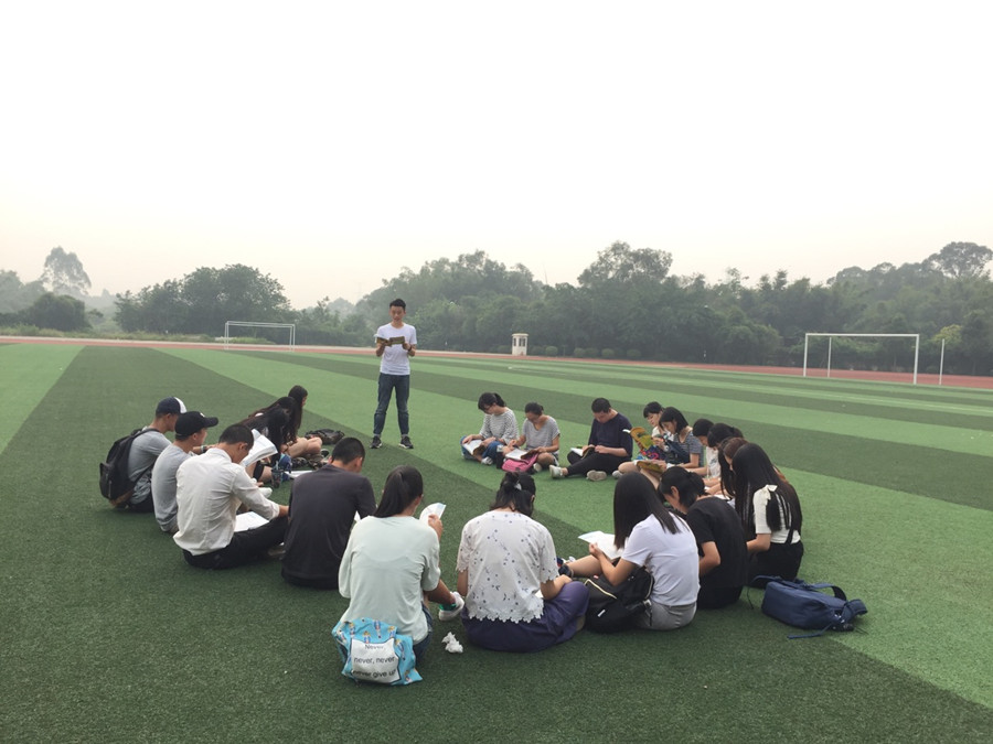 为了尽快引导KY开元集团官网新生更快更好地适应大学生活和学习,在新年及扎实地推进《KY开元集团官网“五早一晚”制度》,在新生辅导员和学生的组织下,KY开元集团官网2016级新生积极准时地开展了大学生活中第一次早读,9月26日7:25,各班有秩序地来到广商足球场两旁的观众席,清晨微微阳光下,750多名新生,第一次感受着集体读书和团体学习的魅力。