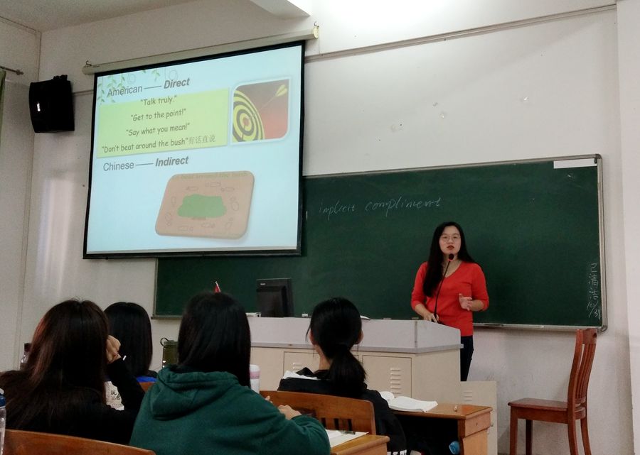 本次研讨课主讲老师为石佳老师,课程主讲内容为Unit 5 Culture Verbal Communication,Reading II The Way People Speak,主题是“不同文化谈话风格的差异”。课程开始,石老师先回顾了上一次课的主要内容,并简单介绍了本次课程的学习目标。石老师把课文中的关于谈话风格的理论进行归纳和总结,并引入新的案例进行深入讲解,引导学生深入了解跨文化交际中的交流技巧,然后根据课堂上提供的三个案例,组织学生进行小组讨论和分析。