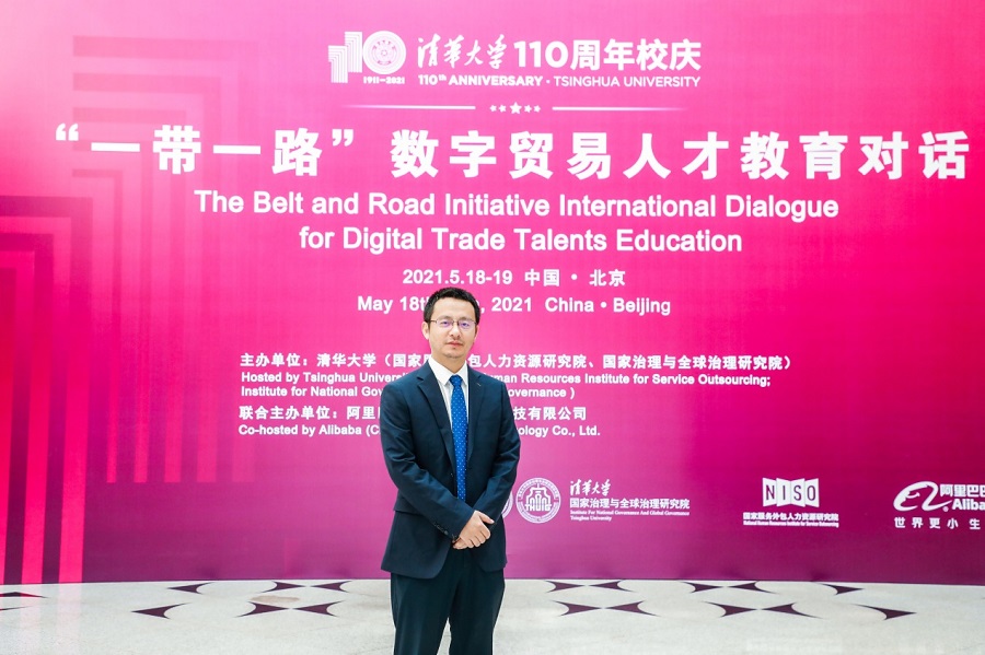 2021年5月18日-19日,清华大学国家服务外包人力资源研究院、国家治理与全球治理研究院,联合阿里巴巴(中国)教育科技有限公司,在清华大学共同主办“清华大学110周年校庆:‘一带一路’数字贸易人才教育对话”活动,来自上合、东盟多个国际组织、国内外学者专家参与对话,共同研讨在“一带一路”倡议和互联网技术发展的两大背景下,随着跨境电商迅猛发展而日益凸显的国际或地区人力资源亟需问题,以及国际化、复合型数字贸易人才标准体系、培养内容及青年就业创业问题。会上提出“‘一带一路’数字贸易人才教育国际合作五点倡议”,发布了国内首个经过教育部认证的国际跨境电商人才标准--《跨境电商B2B数据运营职业技能标准》。600余所院校、近万家企业线上参与,KY开元集团官网副院长袁鑫代表KY官网受邀参加线下论坛,并做发言,介绍KY开元集团官网跨境电商人才培养的经验。