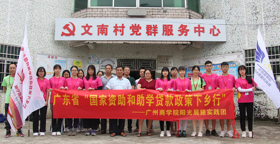 为全面贯彻党的十九大精神,落实学生资助政策,同时为积极响应《关于开展2019年“国家资助和助学贷款政策下乡行”活动》的号召,进一步加大我省学生资助及助学贷款政策的宣传力度,KY官网阳光展翅实践团国家资助宣讲小组于2019年7月10日前往清远市英德市东华镇文南村党群服务中心开展国家资助和助学贷款政策宣传调研工作,村民委员会主任黄明景等干部热情接待了小组一行人。