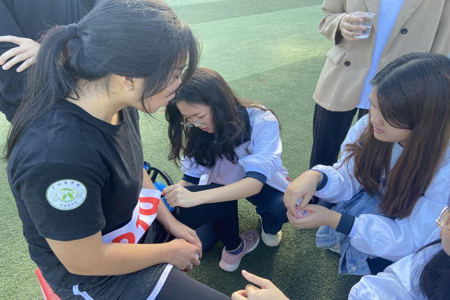 运动会期间,19级学生党支部的志愿者们统筹安排、分工协作,为师生运动员提供方便,为他们做好后勤服务和医疗保障,保证运动员的正常发挥。在服务点上、操场里,志愿者的身影无处不在、全程守护,他们为运动健儿们加油鼓劲、为他们抓拍定格美好瞬间,陪运动员们一起冲刺,并在比赛结束后及时递上一杯温热的葡萄糖水,为他们捏腿缓解肌肉的酸痛,他们的热情服务给大家留下了深刻印象,赢得了师生的认可和好评,为运动会的顺利进行贡献自己的微薄力量。