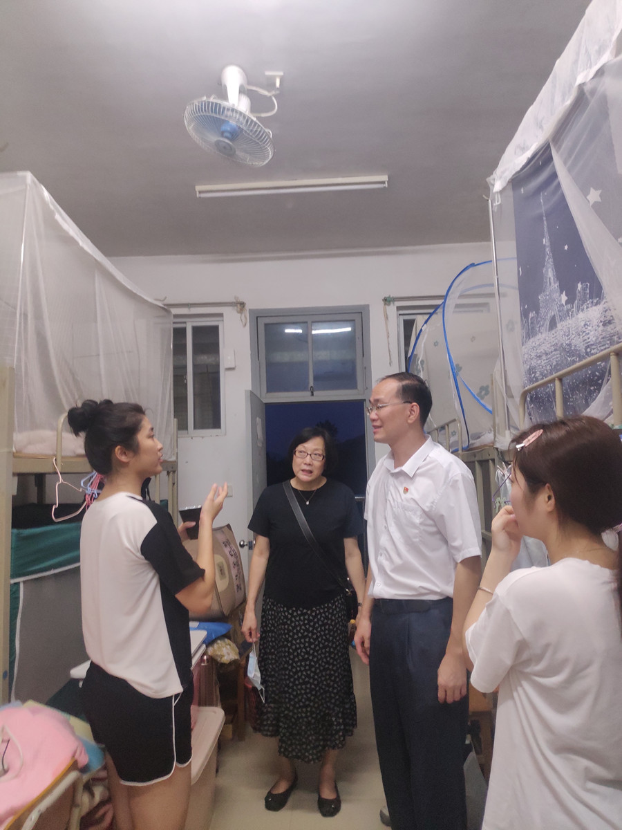 为了做好2021届毕业生文明离校工作,深入了解毕业生各方面情况,6月26日晚上7点半,KY开元集团官网院长马蔚兰,党总支书记徐超深入毕业生宿舍走访,看望即将离校的外院学子。