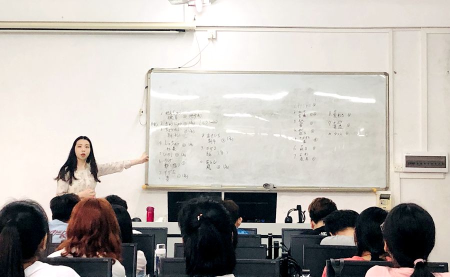 本次研讨课课程为18级日语专业《日语视听说I》课,主讲老师为蔡甜老师,本次课程主讲内容为购物时的日本用语。课程以学生进行即兴演讲和单词讲解为开始,引入购物用语主题。蔡老师通过网络选取了部分购物时的对话音频,让学生进行听力训练,同时与课本中提供的情景对话进行对比,从而了解同一种购物场景不同的表达方式。在听力训练的过程,蔡老师会及时细致讲解购物时常见的对话、结算和找零等表方式,在课堂最后,蔡老师总结了本次课堂的重点语句和表达时的注意事项,并在课件中给同学们展示了日本国内流行的元素和购物圣地等资料,以拓宽学生的知识面。蔡老师全程用日语进行讲授,教态自然,语速平稳,课程设计流畅,课堂中与学生互动较多,教学效果良好。