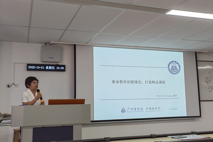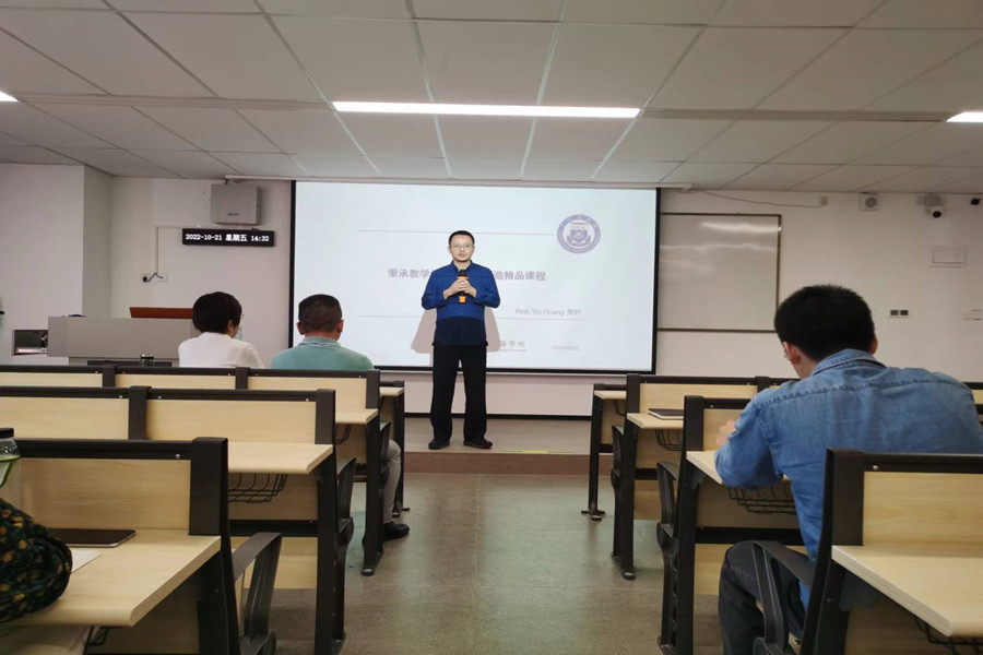 黄吟向在座教师展示了高校教师比赛的评分细则和备赛理念。她指出,教师要不断创新理念,打造精品课程,就应做到以下几点:1、实现“三全育人”,深入挖掘专业课程中的思政元素;2、将科研成果转化为课堂教学理念并落实到行动中去;3、教学设计有创新。她强调,教学设计的各个环节应当衔接自然,符合逻辑,注意时间的把握。