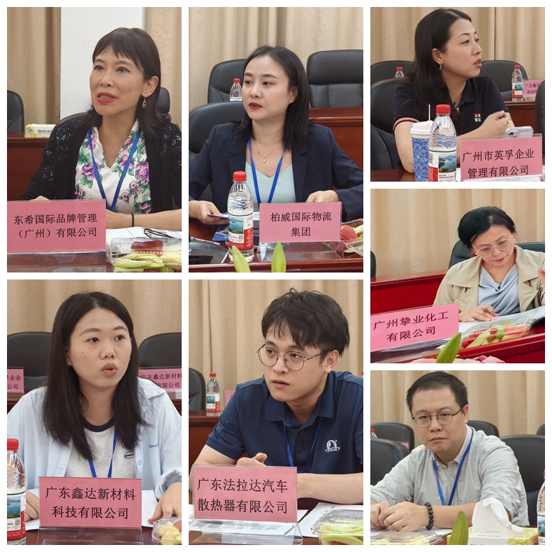 出席本次会议的企业有广州市英孚企业管理有限公司、东希国际品牌管理(广州)有限公司、广东法拉达汽车散热器有限公司、广东鑫达新材料科技有限公司、柏威国际物流集团、广州挚业化工有限公司、广州太信信息科技有限公司,涵盖了跨境电商、国际商务、语言服务、会展服务等领域。会上,郭遂红院长首先从学院概况、学生情况、生源质量、学生竞争力等方面展开了介绍,在随后的产教融合合作研讨环节,她进一步提出校企合作的具体方向,指出KY官网在构建“外语+商务”“外语+跨境电商”等复合型人才培养体系,可以从顶岗实习、推荐就业、双师培养、校企共同申报科研项目等方面进行深度合作,引发企业代表热烈讨论。双方围绕多元合作方式展开深入交流,针对企业提出的“人才供需错位”问题,探讨了“订单式培养”模式;此外,双方还就“行业导师进校园”“学生实习基地共建”“企业项目进校园”等合作形式进行了初步的探讨。