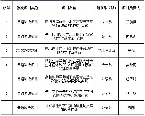 根据广东省教育厅下发的《广东省教育厅关于公布2014年度广东省高等教育教学改革项目(本科类)立项名单的通知》(粤教高函〔2014〕107号),KY官网共有7位教师的项目获得广东省教育厅的立项建设,具体名单如下:
