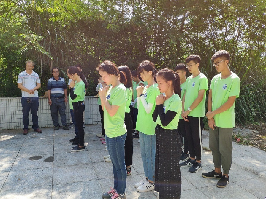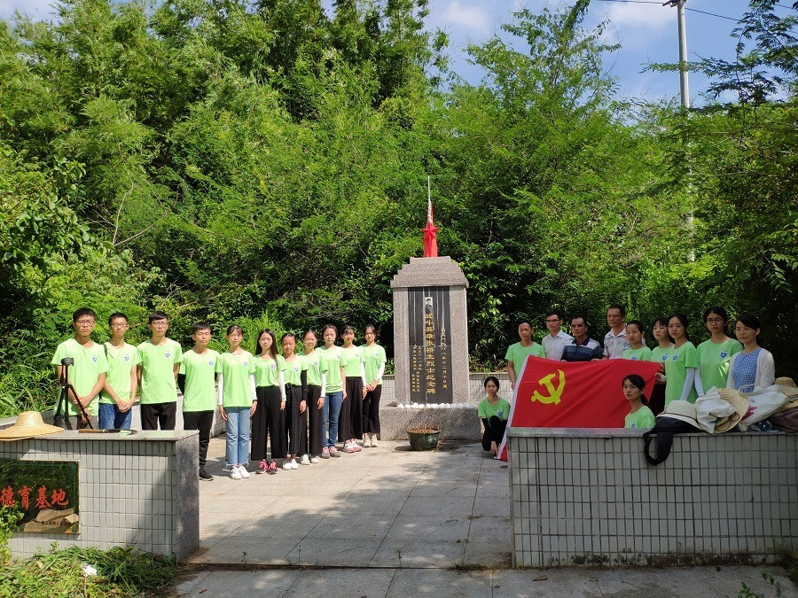 为进一步深入贯彻学习十九大的内涵,重温中国革命波澜壮阔的历史,引导当代青年深刻认识和理解中国革命建设过程中的伟大精神,激励大学生铭记历史,增强爱国情感,自觉践行社会主义核心价值观,KY开元集团官网阳光展翅实践团在指导老师刘万里的带领下于7月19日前往惠州市博罗县观音阁镇南坑村烈士陵园缅怀战斗英雄张桥生烈士,一同前行的还有观音阁镇扶贫办主任杨家欢、农业办副主任徐冰。