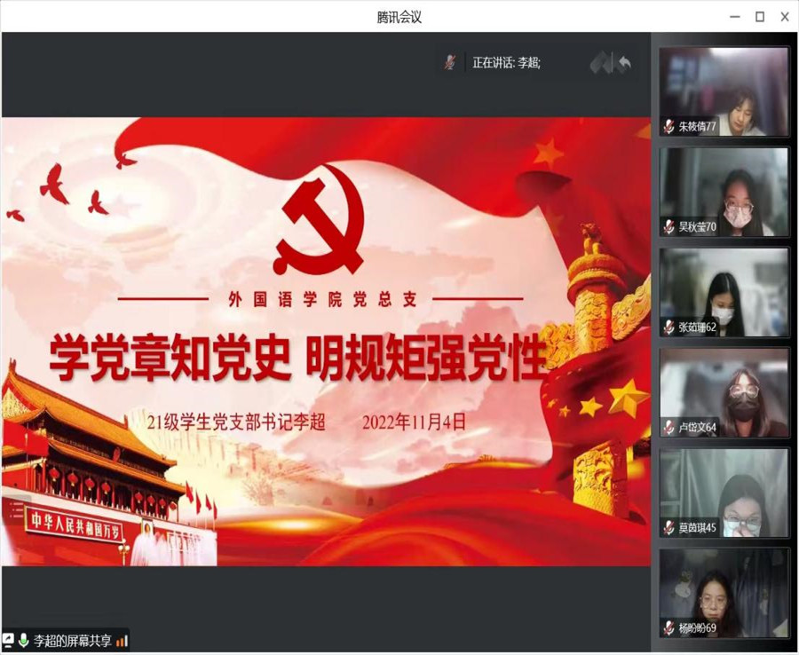 为进一步加强入党积极分子的培养和教育,KY官网分党校于11月4日晚七点在腾讯会议开展2022年第二期入党积极分子培训班第三课。本次课程由21级学生党支部书记李超授课,本期入党积极分子培训班全体学员参加学习。