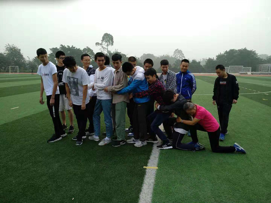 还有一群可爱的人,她们风雨无阻的陪伴与关心无处不在,她们给予了训练的同学们莫大的鼓舞,她们是不辞辛苦的团体操指导老师董业平教授、陈抗老师、王海云老师;是时刻关注他们的辅导员;是默默协助老师完成各项工作的团学干部们。