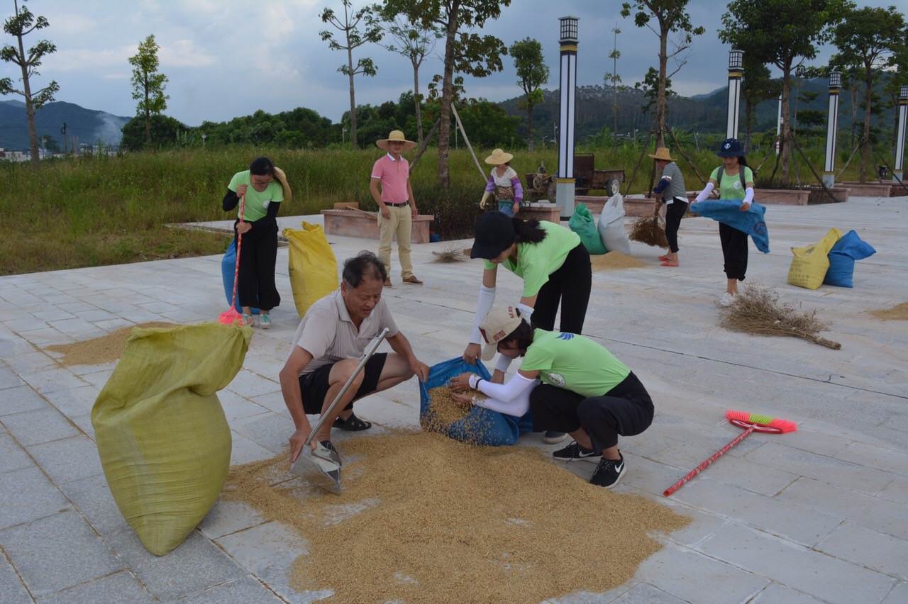 此次志愿活动主要是针对新铺镇各个卫生区域进行清洁整理,队员们在当地志愿者叔叔阿姨的带领下对存在卫生死角进行了认真清理,还积极宣传了创卫及环保知识的重要性,为“长寿之乡”品牌的维护共同努力着。刚刚清洁完指定的区域后恰逢黑云压城,大家自发地加入到了村民抢收稻谷的行列中,看到队员们展现当代青年人乐于助人的品行,脸上洋溢着幸福的笑容,纷纷扬起大拇指,带着淳朴的客家乡音表扬队员们“后生仔很咧!”。志愿者们付出的是汗水,收获的却是成长,在蕉岭新铺这个客家乡镇留下了珍贵的一幕回忆。