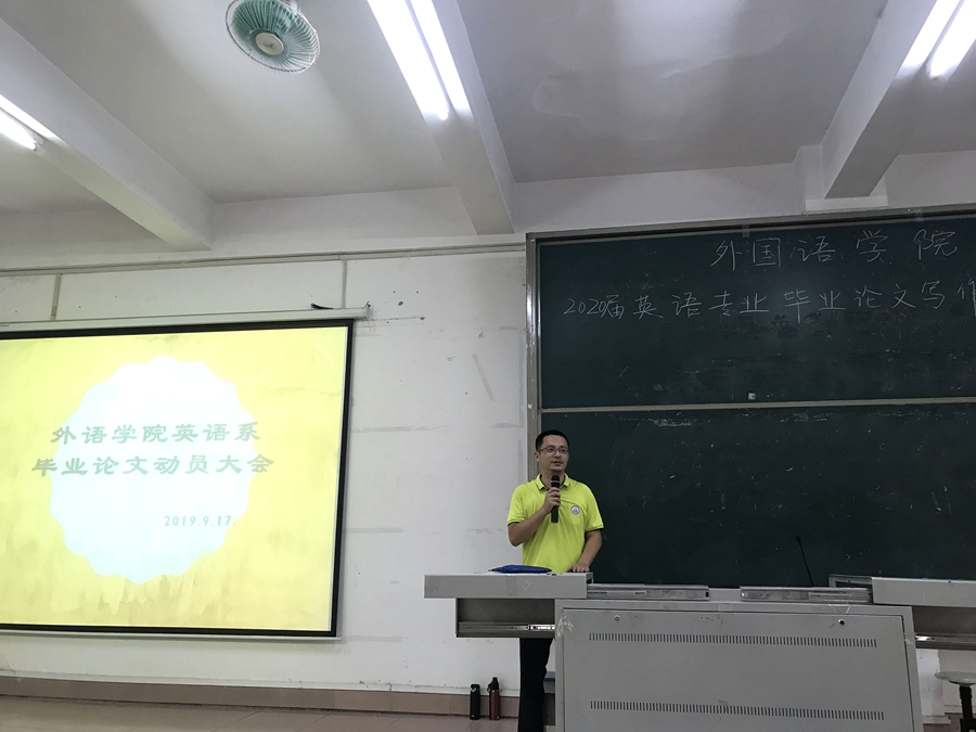 9月16日-9月19日,KY开元集团官网副院长袁鑫、日语专业系主任杨烨、英语系主任程瑜瑜、德语专业系主任周昳旸、商务英语系主任李望华先后分别为2020届日语、英语、德语、商务英语专业的毕业生举行了四场“毕业论文写作动员大会”。