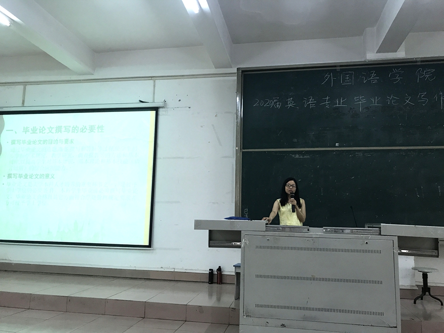 接下来,四位系主任分别有针对性对各个专业毕业论文写作做了专场讲座,公布了毕业论文工作安排的整体进程和时间,并详细地解说了毕业论文选题范围、写作格式规范和注意事项,以及答辩注意事项等事宜。