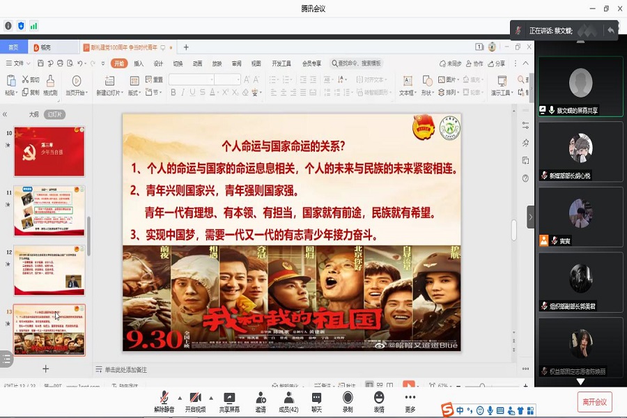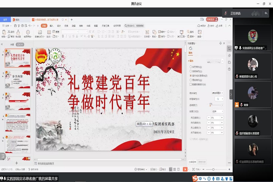 为不断提高KY官网团委工作人员的思想理论水平和思想政治素质,进一步坚定紧跟党的信念,引导团委工作人员们在日常生活中发挥模范带头作用。KY官网团委于2月9日晚19:30在线上召开“献礼建党一百周年,争做青年时代先锋”主题会议,出席本次会议的有KY开元集团官网团委书记蔡文蝶、副书记姚焕雯、秘书长郭懿、组织部部长陈冰及团委工作人员们。