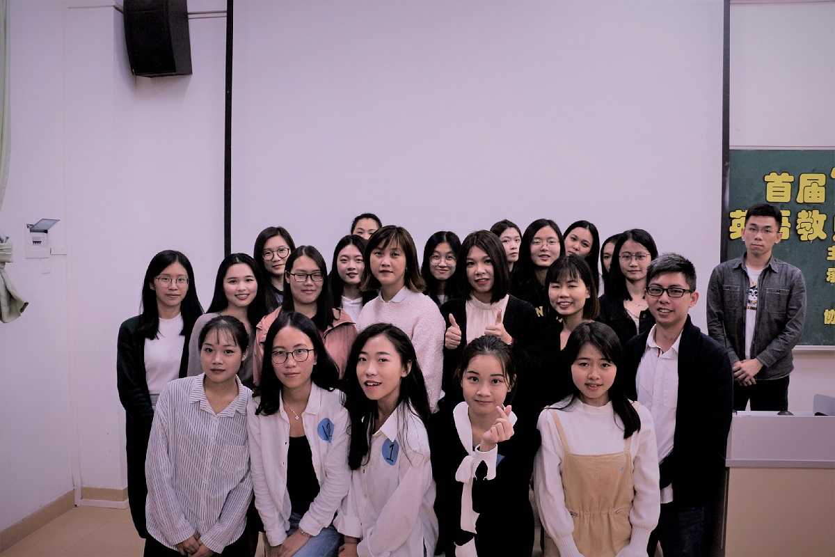 比赛正式开始,各位选手依次上台进行技能展示,包括上台说课与才艺展示两部分内容。选手们在比赛中展示出了自己良好的英语表达能力,通过舞蹈、歌唱、朗诵、剪纸等富有个性的才艺,表现出对青少年英语教学的热情与张力。李金钰同学的教案设计环环相扣,吸引了在场评委的目光;叶梓芸同学根据授课学生特点,别出心裁地设计和演示了字母操;伍晨菲同学则以准确流畅的发音、从容大方的仪态展示了英语小教师的良好形象。