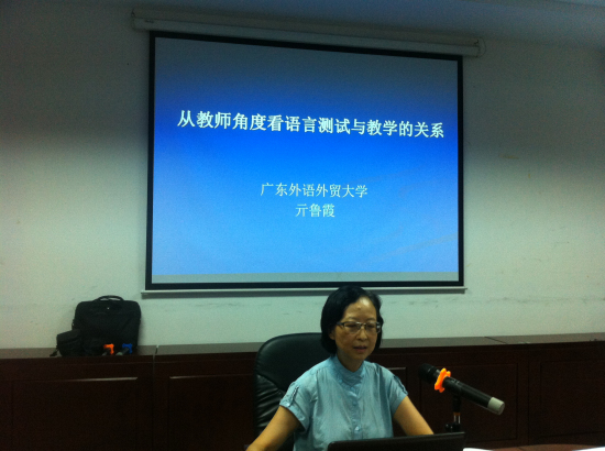 5月28日下午,广东外语外贸大学教授、博士生导师亓鲁霞应邀来KY官网外语系开展了一场关于教师、教学与考试相关作用的讲座,讲座主题为“从教师角度看语言测试与教学的关系”。亓教授深入浅出地从教师及学习者自身的角度对语言测试的特点及利弊进行了阐述。