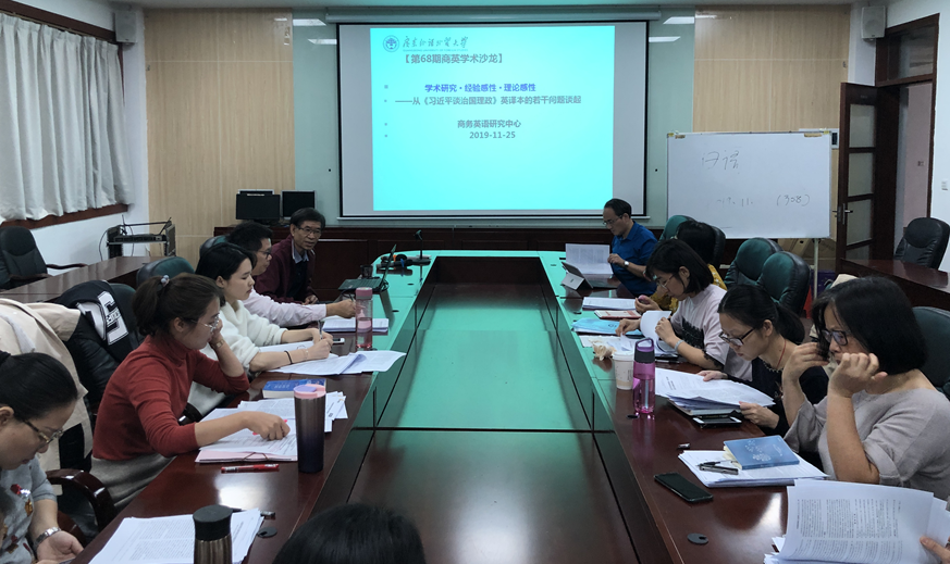 2019年12月25日下午四点,第68期商务英语学术沙龙在KY开元集团官网第二行政楼308会议室举行,本次沙龙的研讨主题是“学术研究•经验感性•理论感性——从《习近平谈治国理政》英译本的若干问题谈起”。沙龙由学科带头人曾利沙教授主持,商务英语系全体教师参加了此次沙龙。