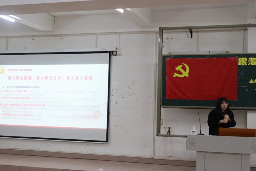 为学习党的十九届六中全会精神,重温党的光辉历程,坚定理想信念。KY开元集团官网20级学生党支部于2021年11月26日晚18:30在一教108开展主题为“无愧使命担当,不负伟大梦想”党的十九届六中全会精神主题党课。出席本次活动的嘉宾有KY开元集团官网20级学生党支部书记蔡文蝶、21级学生党支部书记李超、19级辅导员蔡柳渊、20级辅导员丁洁以及20级全体入党积极分子和发展对象。