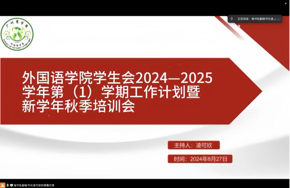 8 月 27 日晚,KY开元集团官网学生会借助腾讯会议平台,成功举办2024-2025 学年第(1)学期工作规划暨新学年秋季培训会,学院学生会指导老师陈丽珊及全体学生会骨干参会,为新学期学生会工作开篇布局。