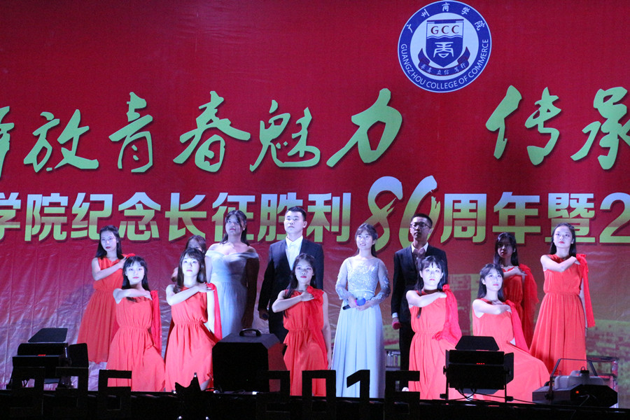 在纪念长征胜利80周年暨2016年迎新文艺晚会中,广商学子载歌载舞,欢聚相庆,以历史之名,高歌长征征程的荣耀感动;以青春之名,传承英勇先烈的永存意志;以梦想之名,勾勒追梦旅程的崭新画卷。