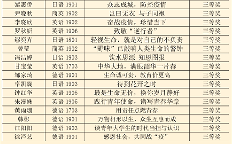 在此次防疫征文比赛中,我们共收到了662份作品,经老师们严格把关和筛选获奖名单已出炉: