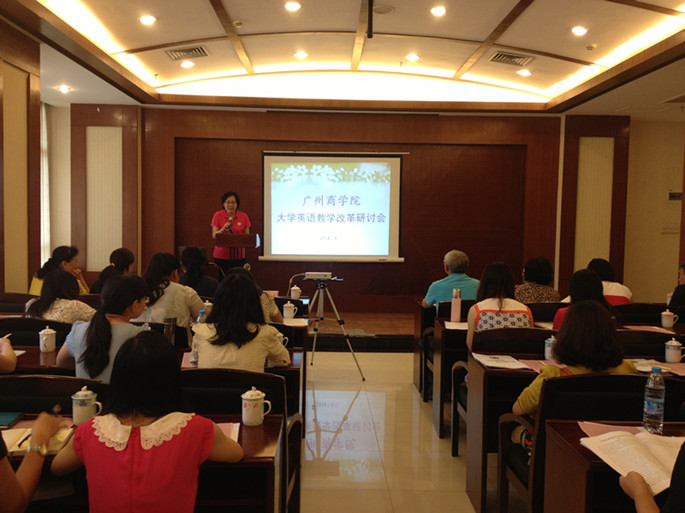 胡光忠教授为会议致辞。他要求大学英语教师尽快改变传统教学模式,利用现有优势攻克改革难题,让学生成为课堂主体,加强师生互动,全面提高学生的听说读写能力,培养学生英语应用能力。