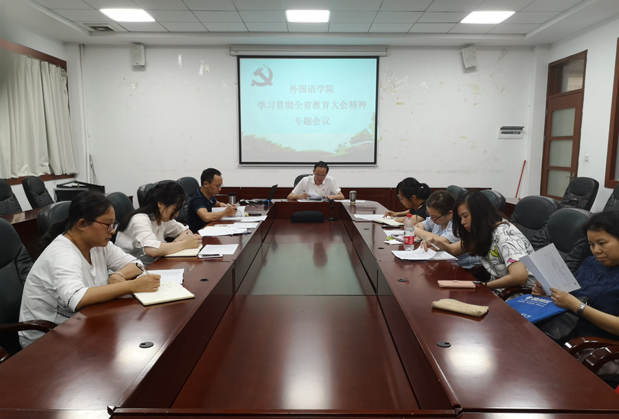 会前,与会人员认真观看了全省教育大会的视频。之后,徐超向大会提出了希望和要求。第一,全省教育大会是我省深入学习贯彻习近平总书记关于教育的重要论述和全国教育大会精神的工作部署会,是全面推进教育强省的动员会,因此,各党支部书记、辅导员应提高政治站位,切实把思想和行动统一到中央和省委的部署上来。第二,准确把握全省教育大会精神,奋力开创新时代KY开元集团官网事业发展的新局面,重点做好以下几项工作:一是抓好学习研讨,各党支部、系(办、中心、教研室)重点学习全省教育大会的视频及有关文件精神,组织开展专题讨论。二是抓好党建工作,各党支部应发挥战斗堡垒作用,各位党员应发挥先锋模范带头作用,确保学院的各项安全。三是抓好铸魂育人工作,引导每位教师既要教书,更要育人,切实承担起每门课程的思想政治教育职责,重点做好师生共建结对子的每项工作。四是抓好教育教学改革,引导每位教师着力于应用型外语人才的培养,切实提升教学质量,同时积极配合学院做好本科教学工作合格评估各项工作。五是抓好师资队伍建设,学院及各党支部、系(办、中心、教研室)要切实做好政治上激励,工作上支持,待遇上保障,心理上关怀有关工作。六是抓好宣传报道,营造学习贯彻的良好的氛围。