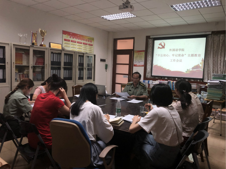 为响应省委教育工委教育系统“不忘初心、牢记使命”主题教育第二批学习工作部署和要求,为全力推进主题教育,9月23日,KY开元集团官网党政联席会议在第二行政楼302举行,学院院长马蔚兰教授,副院长袁鑫,党总支书记徐超出席了会议。会议落实第一议题制度,共同学习了习近平在“不忘初心,牢记使命”主题教育工作会议上的重要讲话精神,研讨了校党委主题教育的总体要求,活动内容和工作要求,统筹推进《外国语学校“不忘初心,牢记使命”主题教育方案》各项工作。
