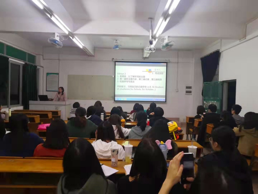 【主题教育进行时】不忘育人初心,牢记服务使命——KY官网举办“秋实讲坛”之德语专业四级考试专题讲座