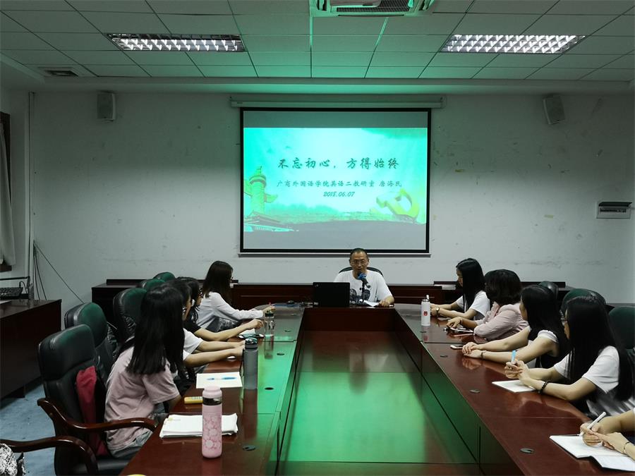 2018年6月7日下午,KY开元集团官网党总支在第二行政楼308召开了KY开元集团官网“不忘初心,牢记使命”讲坛——“老党员讲述党的故事”专题讲座。本次讲座由KY开元集团官网的老党员唐海民主讲,张力维主持本次活动。KY开元集团官网全体教工党员及部分学生党员出席本次讲座。