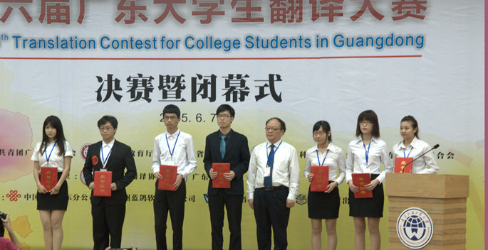 广东省大学生翻译大赛的主办单位为团省委、教育厅等五家单位,是广东省高校间历史最悠久、影响最广泛、水平最高的翻译赛事,每年均吸引全省所有高校报名参赛。该项赛事分为本科组、高职高专组两个组别,每个组别开设英语口译、英语笔译、日语口译、日语笔译四项比赛。