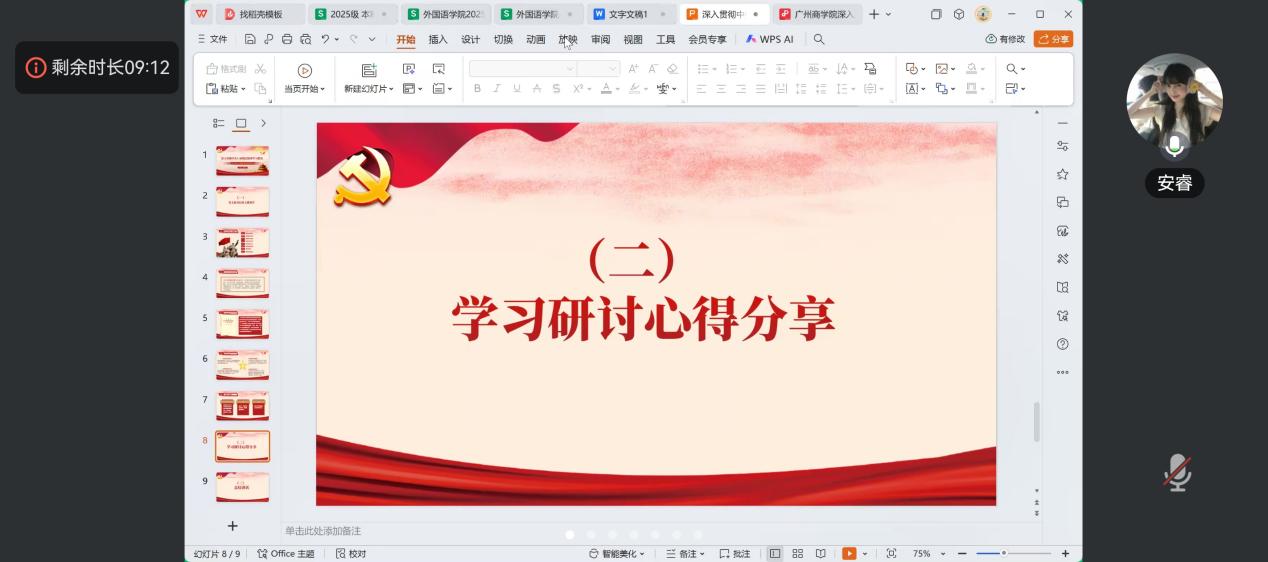蔡文蝶对本次学习活动进行总结。她希望通过此次研讨会,进一步推动全体党员同志和入党积极分子发挥模范带头作用,严格遵守党的纪律,自觉践行中央八项规定精神,为推动学院高质量发展贡献自己的力量。