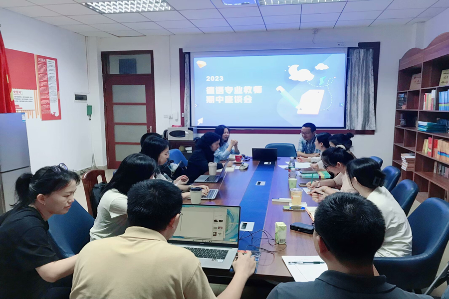 座谈会中,袁鑫指出要继续加强德语专业建设,探索新的发展道路,强调了专业品牌建设与宣传的重要性。接着,周昳旸强调了整体、全局的专业建设理念,并与参会教师对专业建设、课程建设、科研发展、师资发展和学生活动等方面进行了深入分析和讨论。