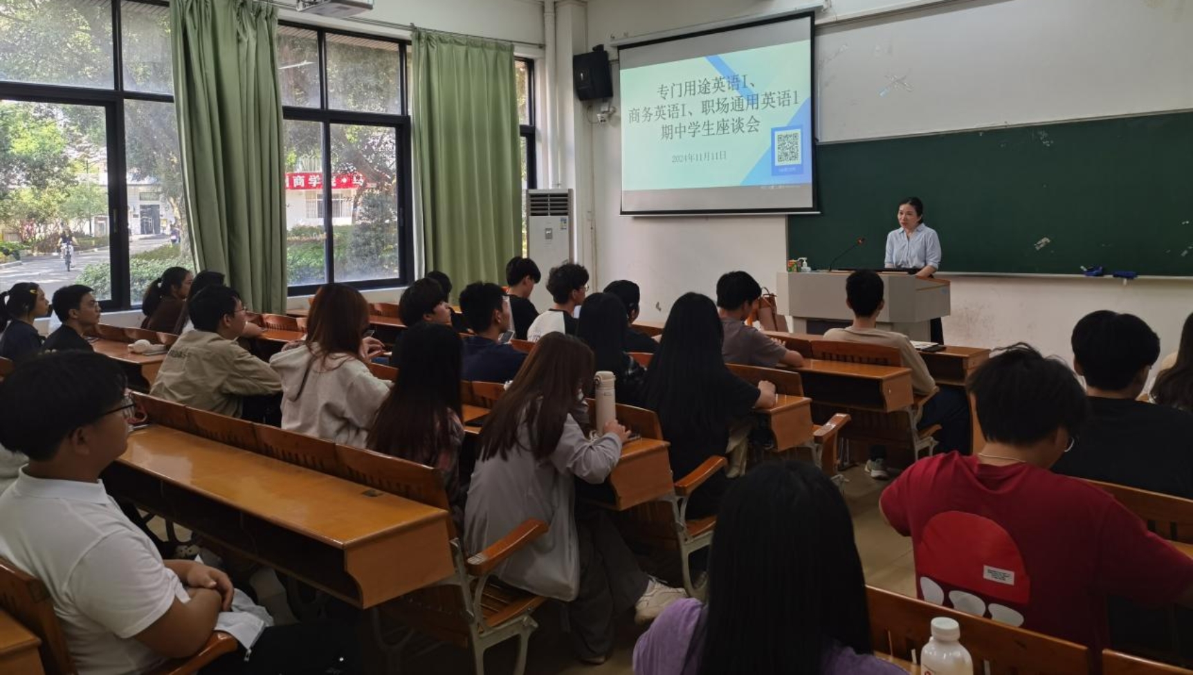 会议首先聚焦于学生对专门用途英语I、商务英语I、职场通用英语1的课程及教师的反馈。与会的学生代表对教师的教学工作给予了积极肯定,如教学内容详尽、教学方法多样、学生受益颇丰。同时,学生们也提出了一些建议:在专门用途英语I课程中,部分学生希望增加语法讲解,部分学生希望课程能更多地涉及四级考试内容;在商务英语I课程中,部分学生希望学生展示与老师教学的比例能够有所调整;而在职场通用英语1课程中,部分学生希望英语教学能更多地照顾到基础较弱的日语生。会议的第二部分则围绕大二年级大学英语课程的设置展开探讨。多数学生认为,在大学二年级开设大学英语课程极为必要,该课程对提升学生通过大学英语四六级考试的能力具有显著帮助。此外,国际贸易专业的学生也表示,大学英语课程为他们带来了巨大收获,并建议在大三年级继续开设此课程。