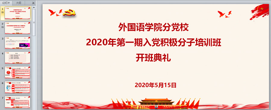 在疫情防控的关键时期,为进一步发挥基层党组织战斗堡垒作用,加强对入党积极分子的培训工作,提高KY开元集团官网分党校入党积极分子的政治站位和政治素养,5月15日晚上,KY开元集团官网分党校2020年第一期入党积极分子学习班开班仪式暨第一讲在腾讯会议线上平台举行。KY开元集团官网党总支书记、分党校校长徐超,分党校班主任黄玉亭、刘丽出席了开班仪式,活动由助理教员2017级杨丽诗同学主持,来自教工党支部和各年级的65名师生入党积极分子、全体党校助理教员参加开班仪式。