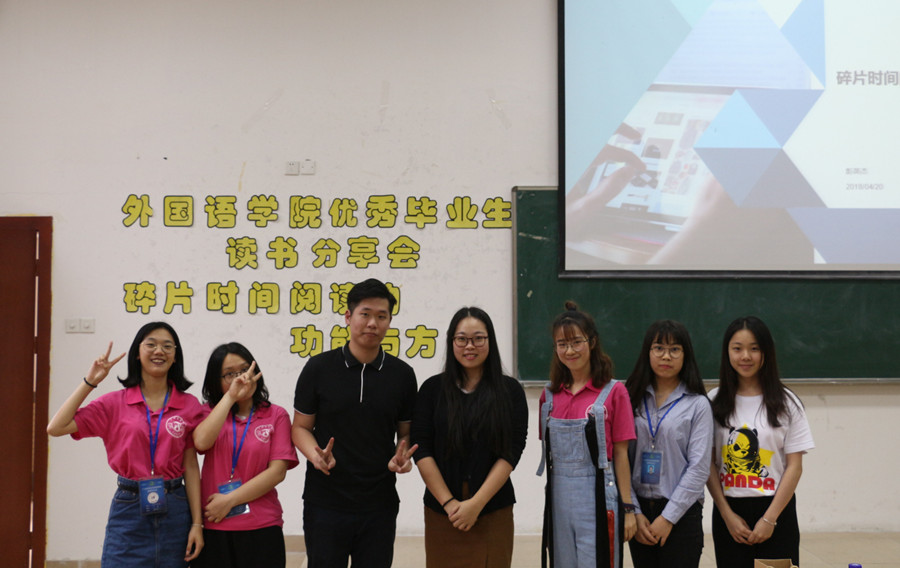 阅读是通过语言文字来获取信息,认识世界、发散思维和提升自己的活动,分享是一个与他人分着享用的主动过程。本次读书分享会是KY官网优秀校友回母校系列活动之一,不仅是外院学子分享知识和交流经验的平台,也是KY官网开展以优秀带动优秀,开展榜样教育的途径,更是构建“书商广商”的有力抓手。