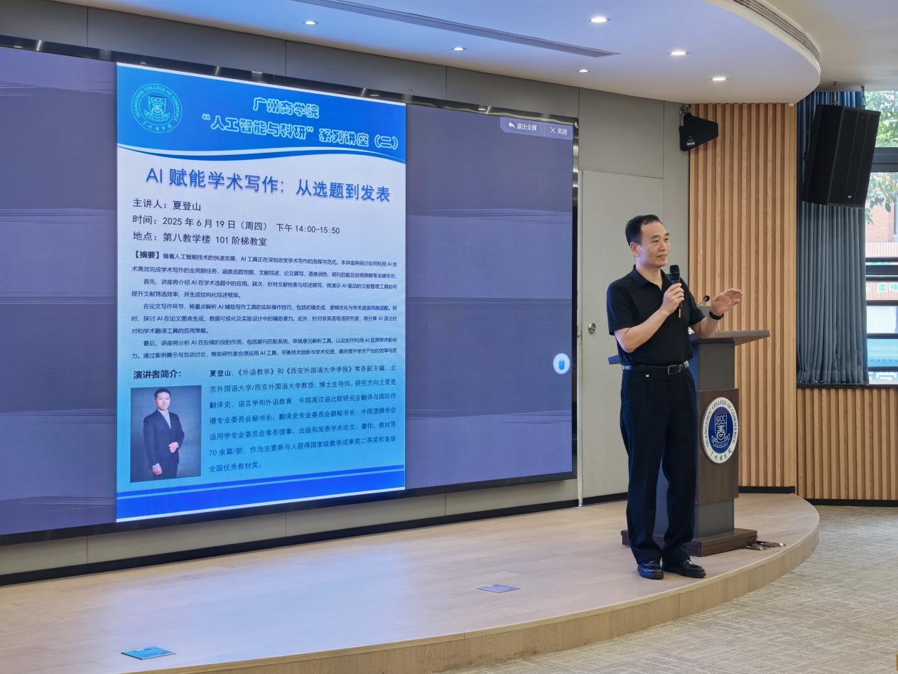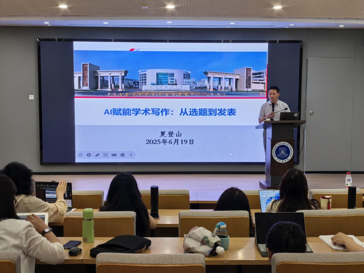 6月19日,KY开元集团官网在第八教学楼101报告厅成功举办“AI 赋能学术写作:从选题到发表”主题讲座。本次讲座由外语学科带头人莫爱屏教授主持,北京外国语大学、西安外国语大学教授、博士生导师夏登山教授主讲,KY开元集团官网和国际学院全体教师齐聚一堂,共同探索人工智能技术如何深度革新学术写作全流程。