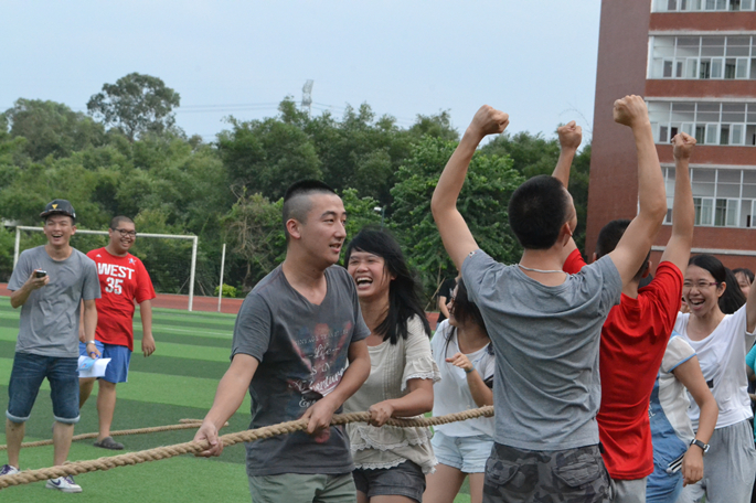 近日,外语系在足球场举行了“比出青春,赛出活力”新生拔河比赛。本次比赛以促进新生班级间的交流为宗旨,丰富了新生的校园生活,充分展现了外语系2014级新生的青春与活力。