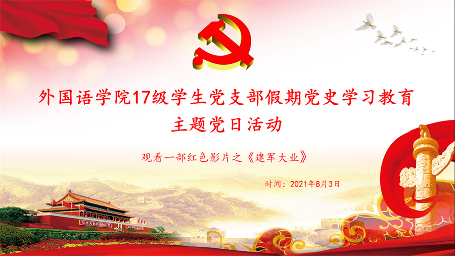 在“八一”建军节来临之际,为了更好地继承和发扬革命优良传统,延续新中国成立100周年的红色氛围,激发KY官网学生党员坚持理论和实际结合,历史和当下贯通,不断从党史中汲取前进的智慧和力量,8月3日晚上21:00,KY官网17级学生党支部通过线上腾讯会议开展了“观看红色电影”之细品《建军大业》主题分享会。共有30名党员同志出席了本次会议,会议由支部党员徐旭雯主持。