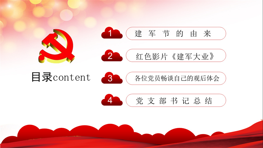 会议主要分为两部分,首先由党支部书记黄士库和党支部副书记刘丽率先谈自己观看《建军大业》的心得体会,然后由其他同志依次分享观影感受。电影《建军大业》围绕1921年前后展开,展现了从1911年辛亥革命后到1921年中国共产党成立这段时间内的历史故事以及以毛泽东、李大钊、陈独秀等第一批中国共产党党员为中心的风云人物在风雨飘摇的时代为国家赴汤蹈火的精彩故事。