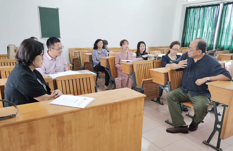 课堂结束后,参与本次观摩课的老师们在三教603课室开展了课程研讨,会议主持人为教研室主任杨烨老师。大家对彭老师的课堂教学给予了充分的肯定,认为彭老师专业知识扎实,个人教学风格突出,在基础知识的引导上能做到以学生为中心,这点值得年轻老师学习。同时,也对教学过程中存在的问题进行了总结。刘小姗教授指出,本课程的授课对像为二年级学生,应该更多的侧重于提升学生的日语语言运用能力,对于基础知识的讲解,可以适当放在课前预习,让学生带着问题来上课,课堂的教学效果会明显提高。同时,本课程为基础语言课程,如果教学方法没有选好,就容易导致课堂气氛沉闷,不利于学生的开口讲日语,所以年轻老师要不断学习新的教学方法和模式,利用新的教学技术与手段,让课堂活起来,并结合自己的教学特点与优势,形成自己独特的教学体系,这样更利于小语种语言的教学发展。另外,在课程思政导入上,可以不仅限于课程最后,也可以贯穿在整个课堂,这样才不会显得课程思政太过于单薄。最后,袁院对本次研讨课进行了总结。他指出,日语教学要紧跟时代步伐,发挥语种优势,在教学上要不断总结经验,寻求创新,为学生提供更广阔的学习空间。