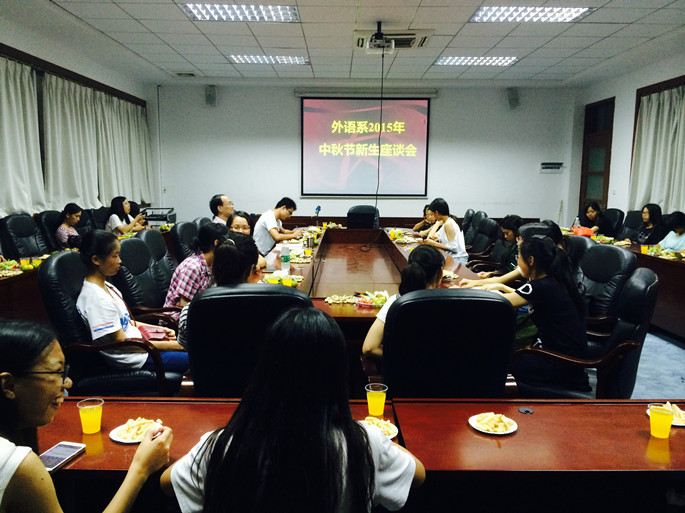 为更好了解新生大学生活适应情况,外语系于9月25日19:00在第二政楼308举行了题为“心系学生,欢聚一堂”之中秋节新生座谈会,出席此次座谈会的有外语系党总支书记徐超、外语系15级辅导员陈龙林、15级学长代表和新生代表,座谈会由辅导员陈龙林主持。