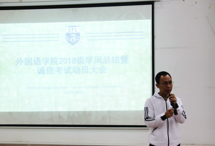 刘万里首先总结了过去一学期年级的学风建设情况,从军训素质训练、“品味经典 弘扬传统”征文比赛、2018年全国高师竞赛、日常课堂及早读考勤、公寓文化建设等方面进行了小结和通报,让同学们在接下来的学风建设过程中以积极主动的心态面对大学的自主学习,严格遵守学校的各类规章制度,为营造良好的学习氛围出力。今年学校新出台了《KY开元集团官网学生奖学金评定办法》,通过共同的学习让每一位学生了解奖学金的类别、评选细则,评审流程等环节,加强对学生个人的激励引导,充分发挥学校奖学金对学风建设的促进作用。在诚信考试动员部分,刘万里参照广商教字[2017]15号文《KY开元集团官网学生考试违规处理办法》再次对学生进行一一解读,从考试违规行为的认定、取证与核实、违规处理等方面进行案例分析,引导学生诚信做人,诚信考试。