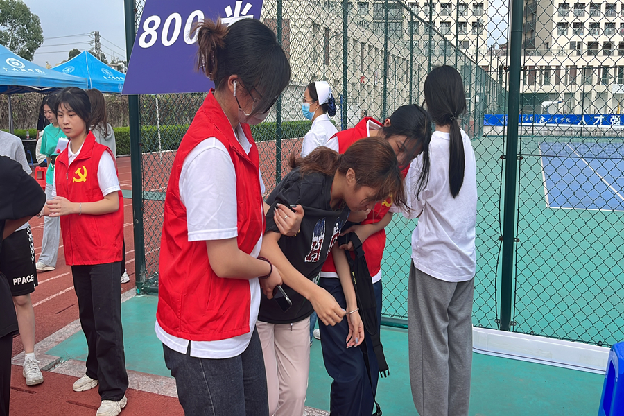 志愿者搀扶体测同学