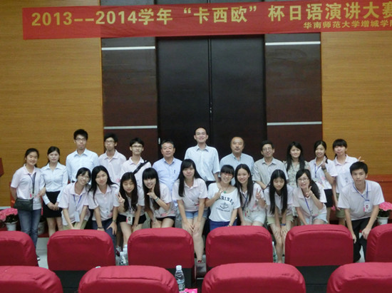 6月13日晚,由我系日语教研室主办,日语协会承办的2014年“卡西欧”杯日语演讲比赛在图书馆学术报告厅隆重举行。我系党总支书记徐超、日语教研室张烈、崔承富、黄小英、外教石桥谦一老师以及辅导员黄玉亭、刘丽萍等出席本次比赛。